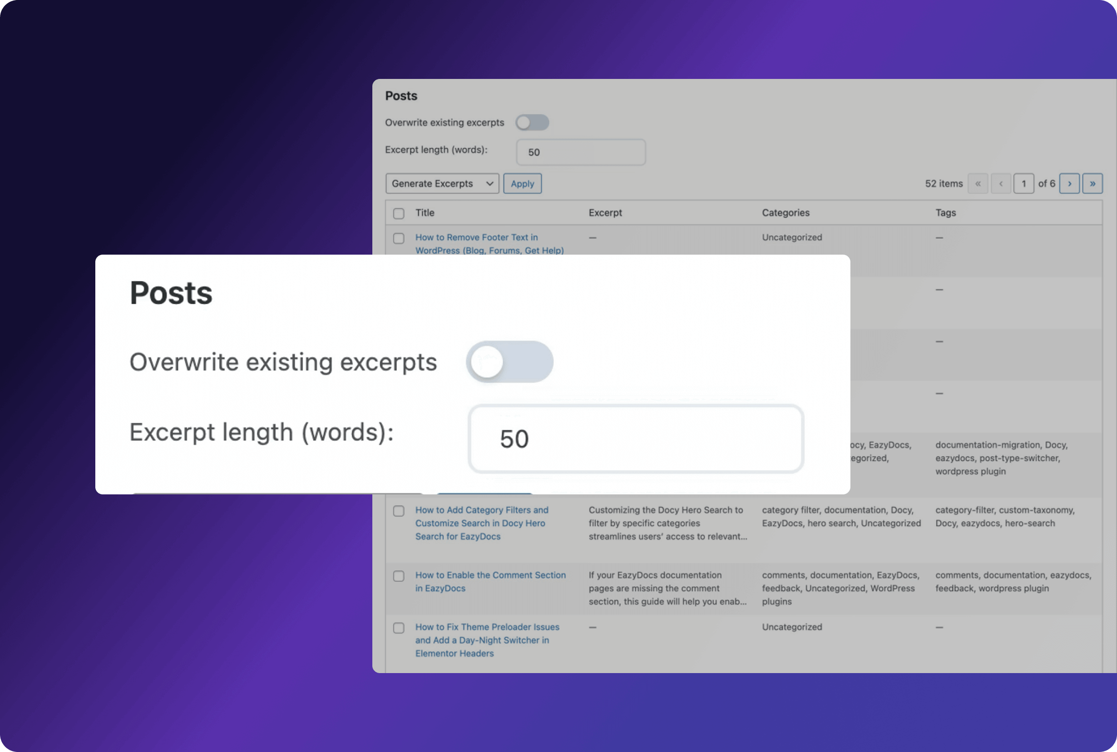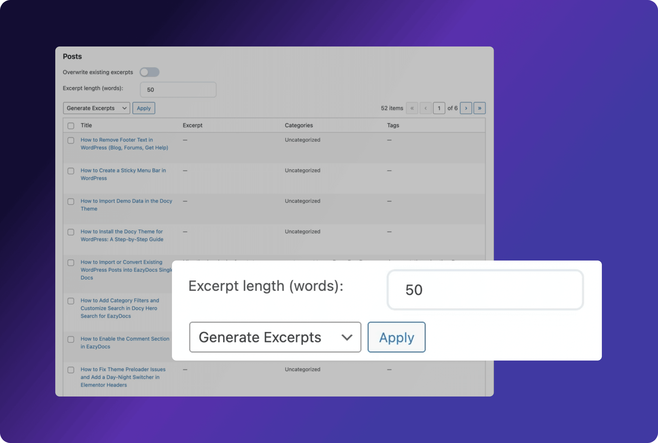 Easily adjust the length of your excerpts to create consistent, concise, and readable summaries across all your content.